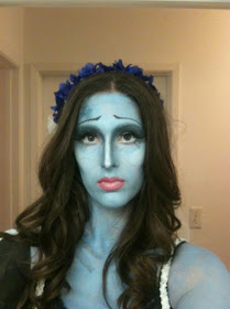 First up is my Corpse Bride costume. The whole thing was very last minute (I couldn't decide what I wanted to dress up as, and I didn't want a lame or slutty costume). I found a makeup tutorial on Pixiwoo's Youtube channel and followed the steps from a Corpse Bride makeup tutorial there. I really liked how the makeup turned out!